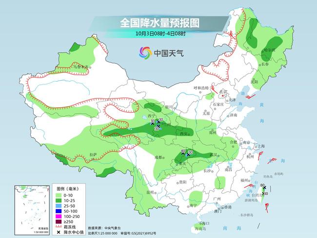 後天,內蒙古東北部、黑龍江中東部和西部、新疆北疆北部、西藏南部、青海東部和南部、甘肅河西和南部、西北地區東部、湖北西部、四川盆地東北部、重慶東北部等地的部分地區有中到大雨,臺灣島等地的部分地區有暴雨。