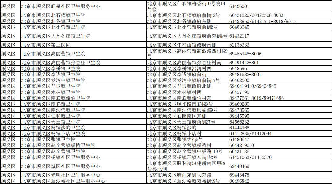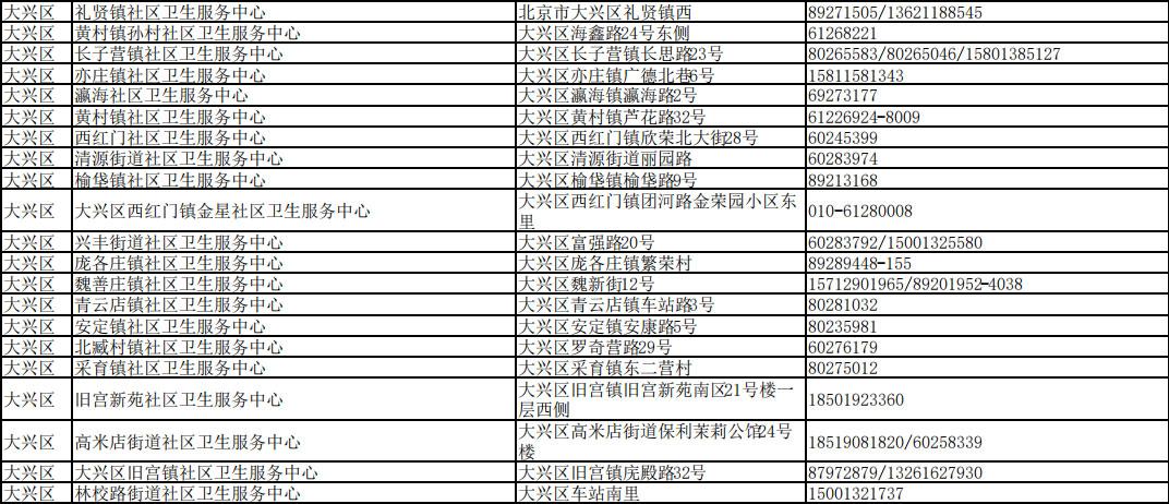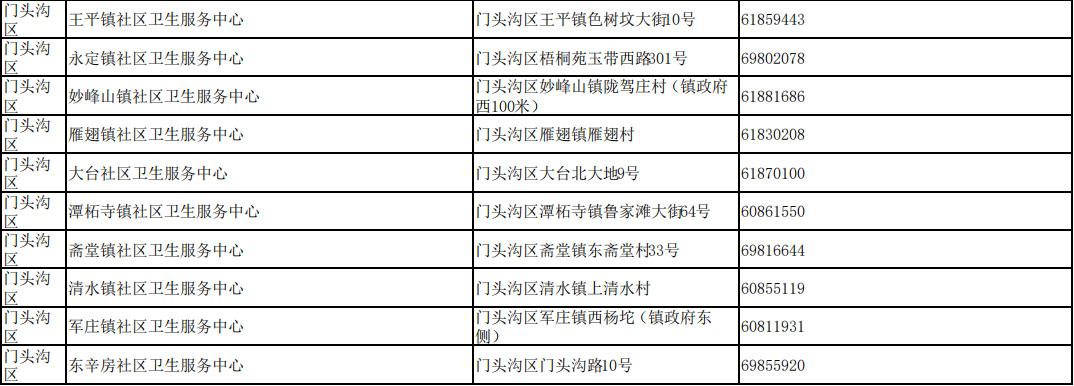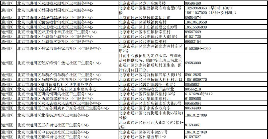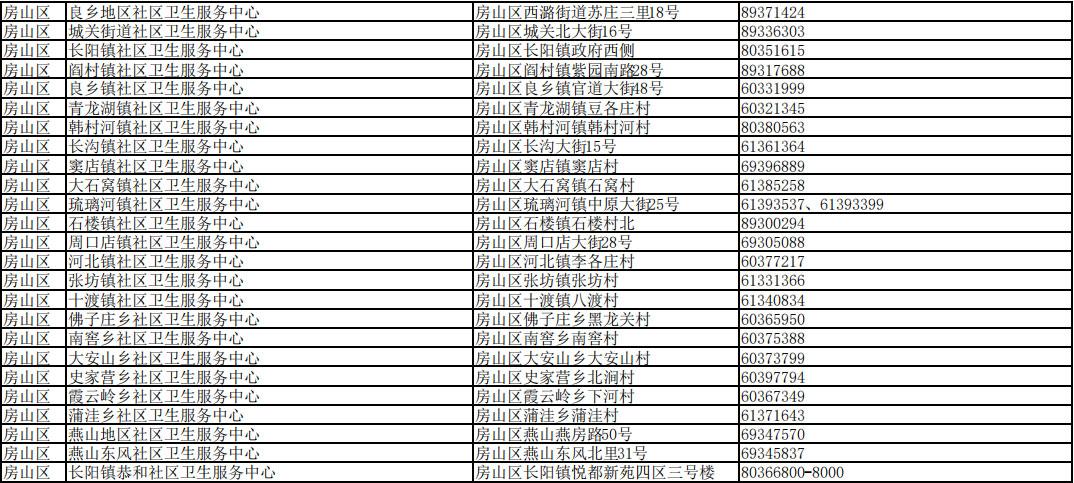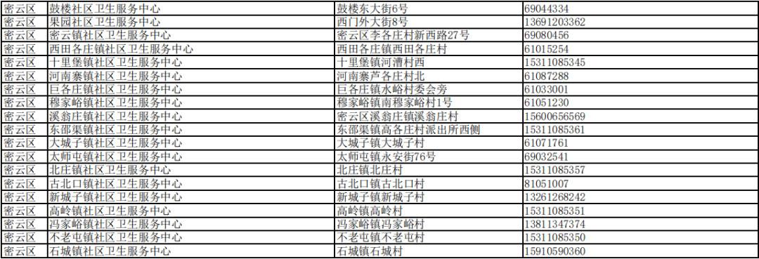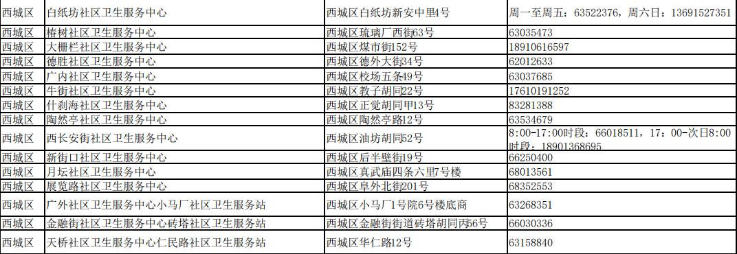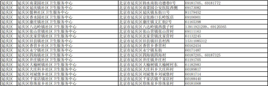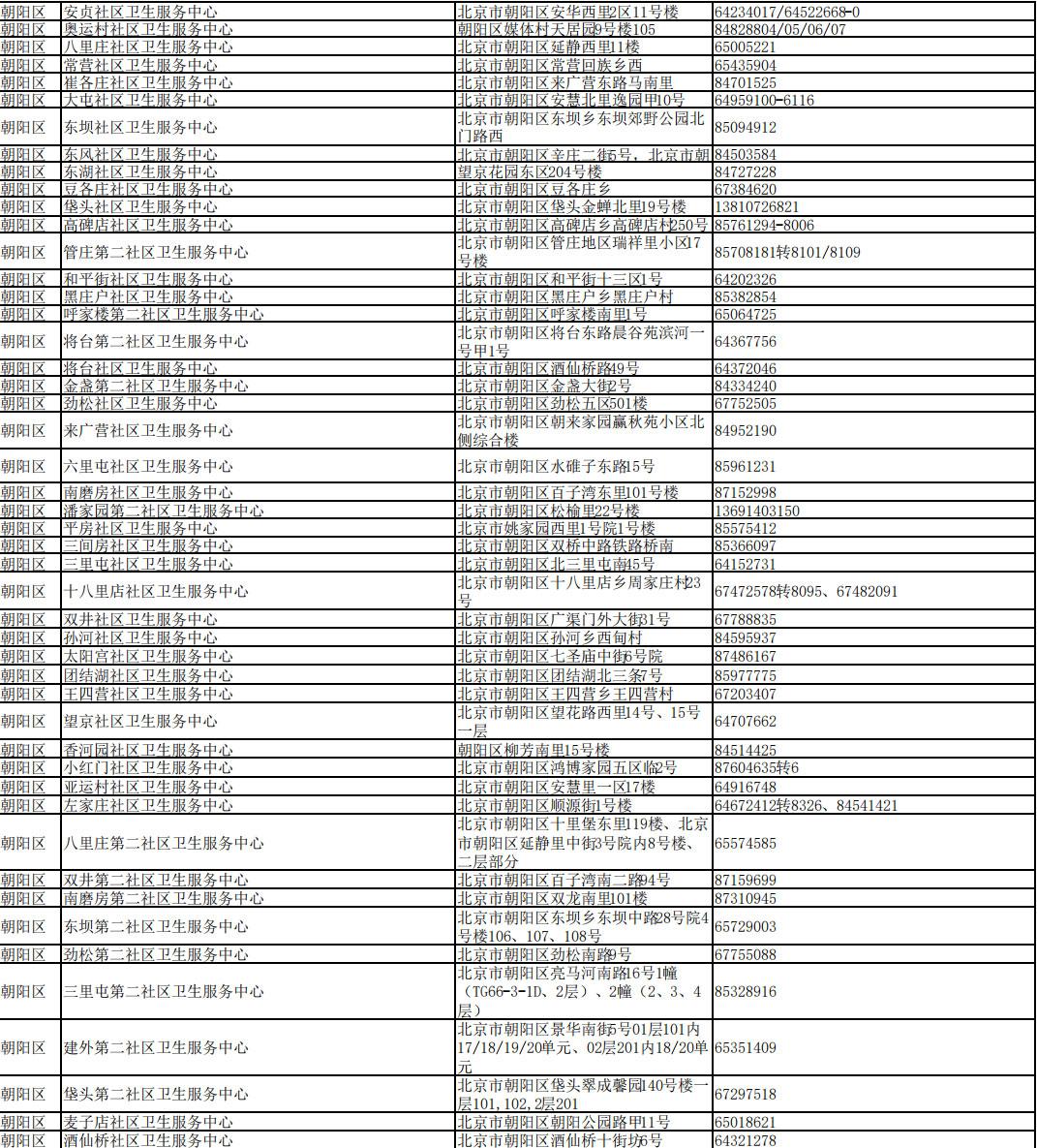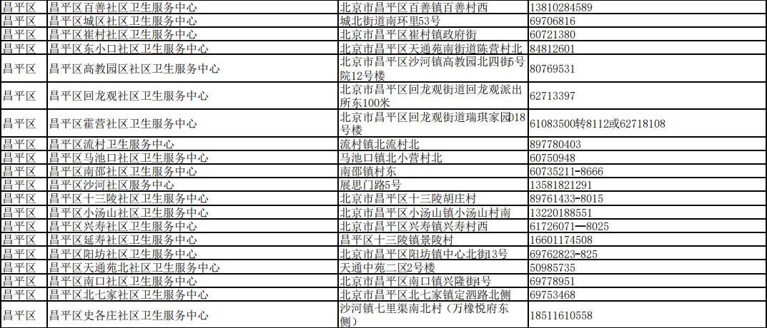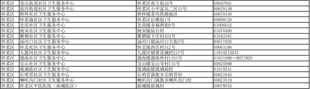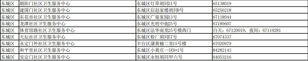北京市接診發熱等11類症狀患者社區衛生服務中心名單