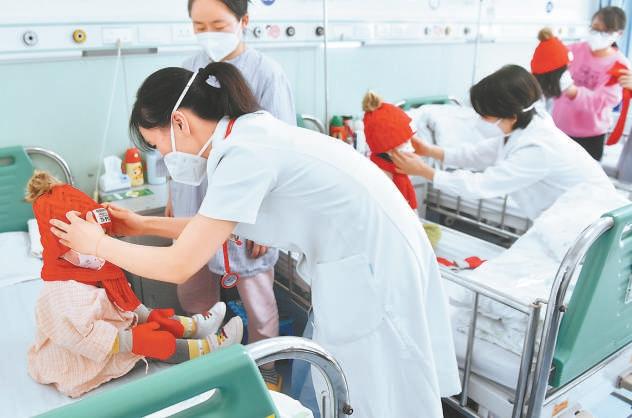 本報訊(實習記者 柴嶸)“小寶貝,試試新帽子,祝你新春快樂!”昨天上午,首都兒科研究所風溼免疫科病房內,洋溢着濃濃的年味,小患者們收到了屬於自己的新年禮物——手套、帽子、圍巾“暖心三件套”。
