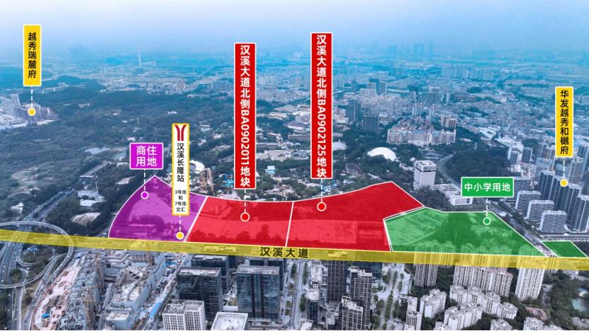 值得一提的還有番禺,作爲此次掛地最多的區域(3宗),番禺漢溪大道北側BA0902011地塊、漢溪大道北側BA0902125地塊以及迎賓路BA0603009地塊,均可稱上乘。尤其漢溪大道北側兩宗地塊,緊鄰地鐵漢溪長隆站,距離較近的還有地鐵18號線南村萬博站,可以直達冼村。