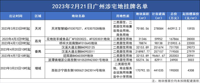 (2023年2月21日廣州涉宅地掛牌名單,來源:廣州市房地產行業協會,央廣網發)