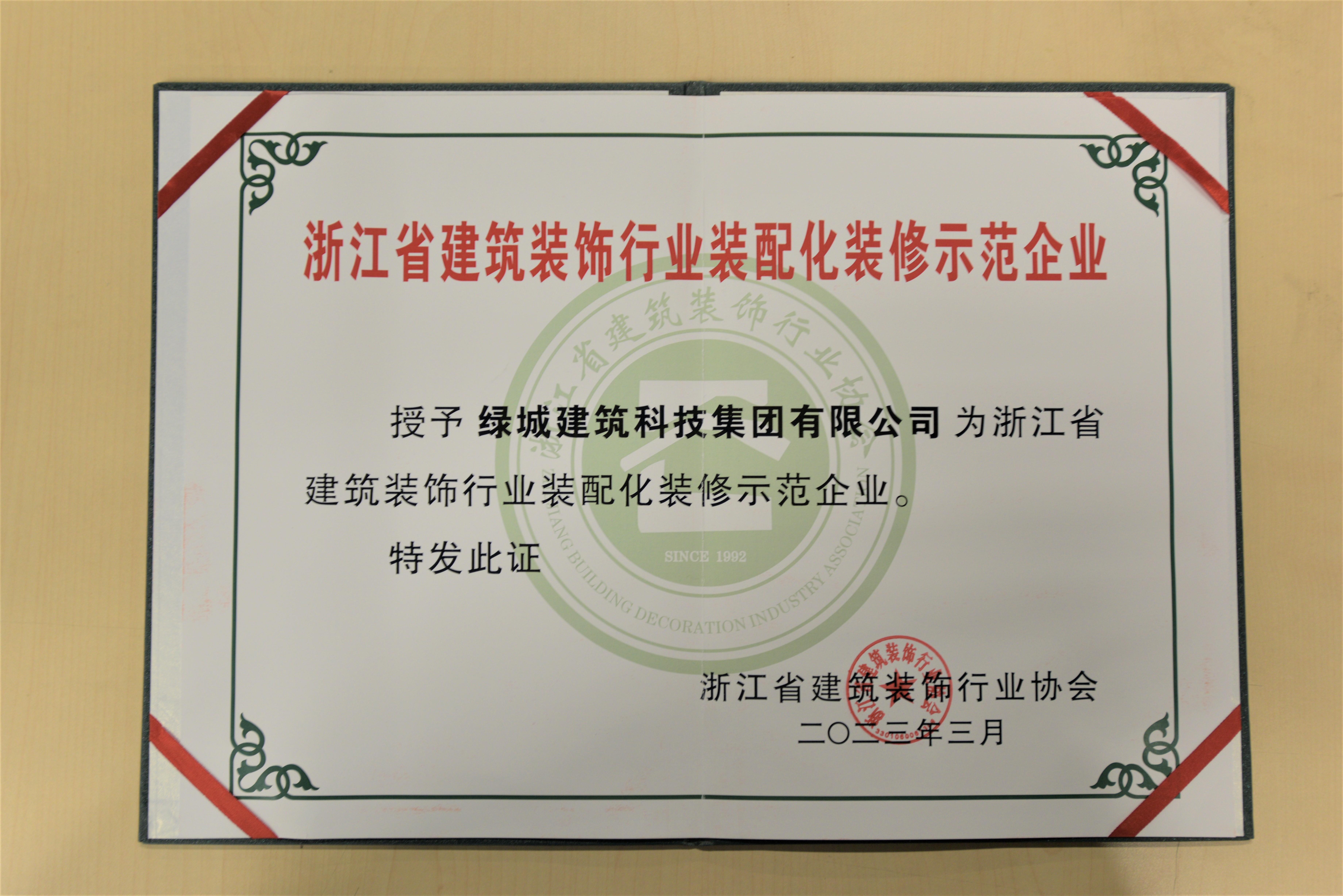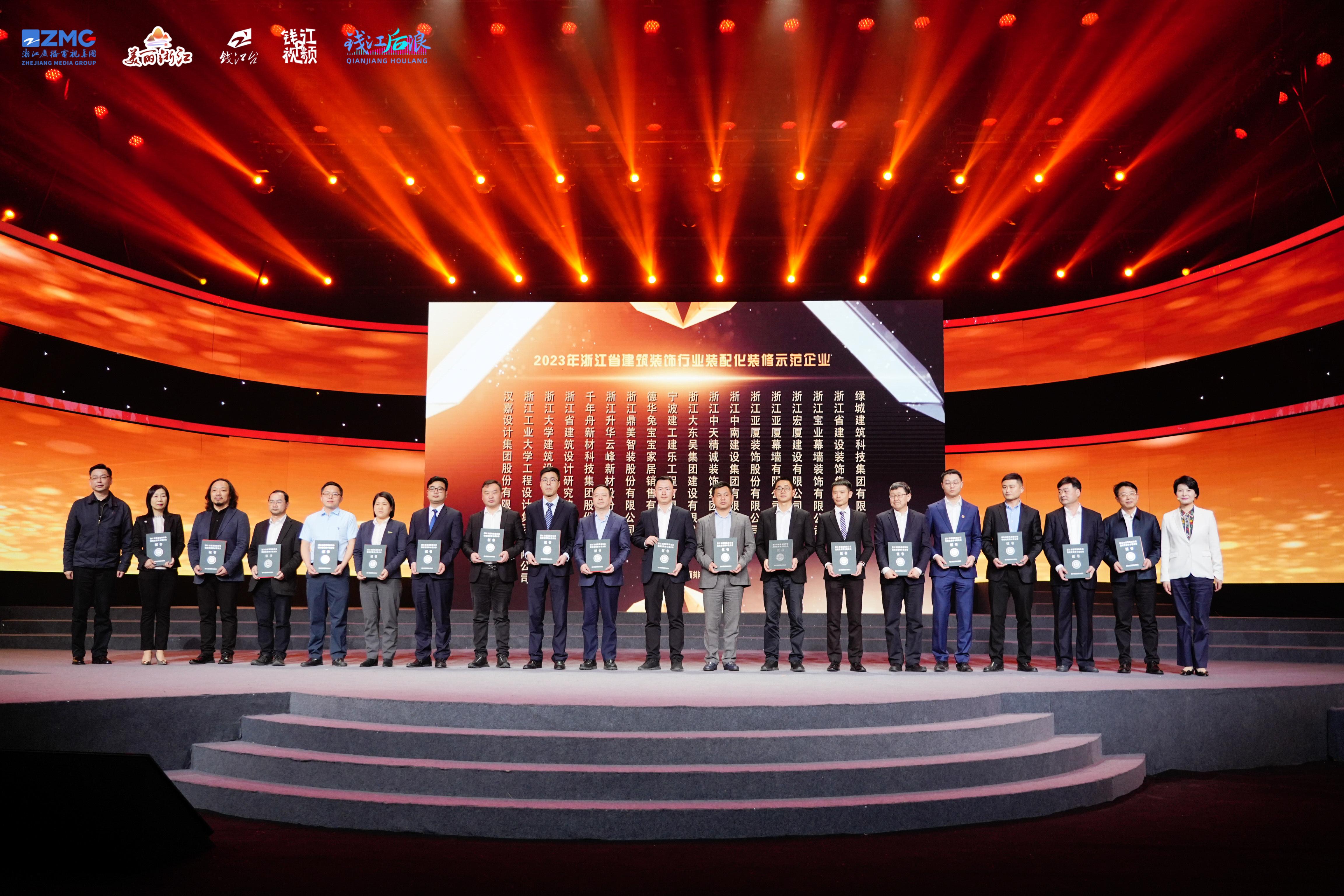 活動現場,綠城建築科技集團榮獲由浙江省建築裝飾行業協會頒發的2023年“浙江省建築裝飾行業裝配化裝修示範企業”稱號,集團副總經理朱快上臺領獎,並共同宣讀建築裝飾行業“消費安全承諾”。