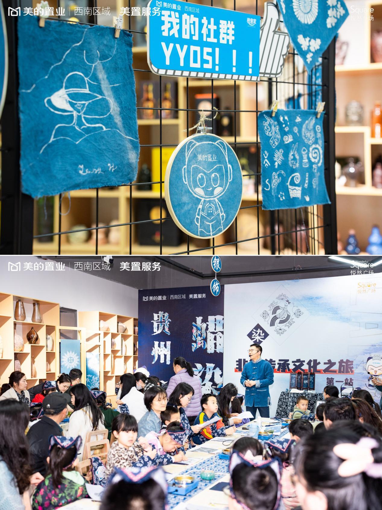 用心的服務與專題活動收穫了業主的一致好評。一塊白布、一把蠟刀、一鉢溫熱的臘,藍底白花與白底藍花的經典配色魅力,領略貴州獨有的少數名族紡織印染手工藝,業主專享的“家門口的非遺課堂”。