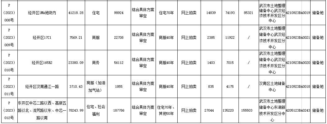 另悉,3月31日,武漢土地市場網發佈了2023年度首批供地清單,共推出48宗地塊,土地總面積214.25公頃。其中:住宅類用地37宗,合計195.15公頃;商服等其他類用地11宗,合計19.10公頃。根據安排,48宗地擬於3月31日至6月30日期間,分批發布正式出讓公告。
