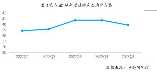 貝殼研究院數據顯示,一季度房源成交週期爲72.0天,房源成交週期環比延長12.0天,同比延長6.5天;而客源成交週期爲10.7天,環比縮短0.9天,同比延長0.1天。業主房源出租週期加長。一季度新增掛牌房源量環比和同比分別增加超20%、超10%,增速超過新增帶看客戶量增速,房源端的競爭更爲激烈。一季度新增掛牌房源均價爲39.9元/平米,同比增加2.6%。