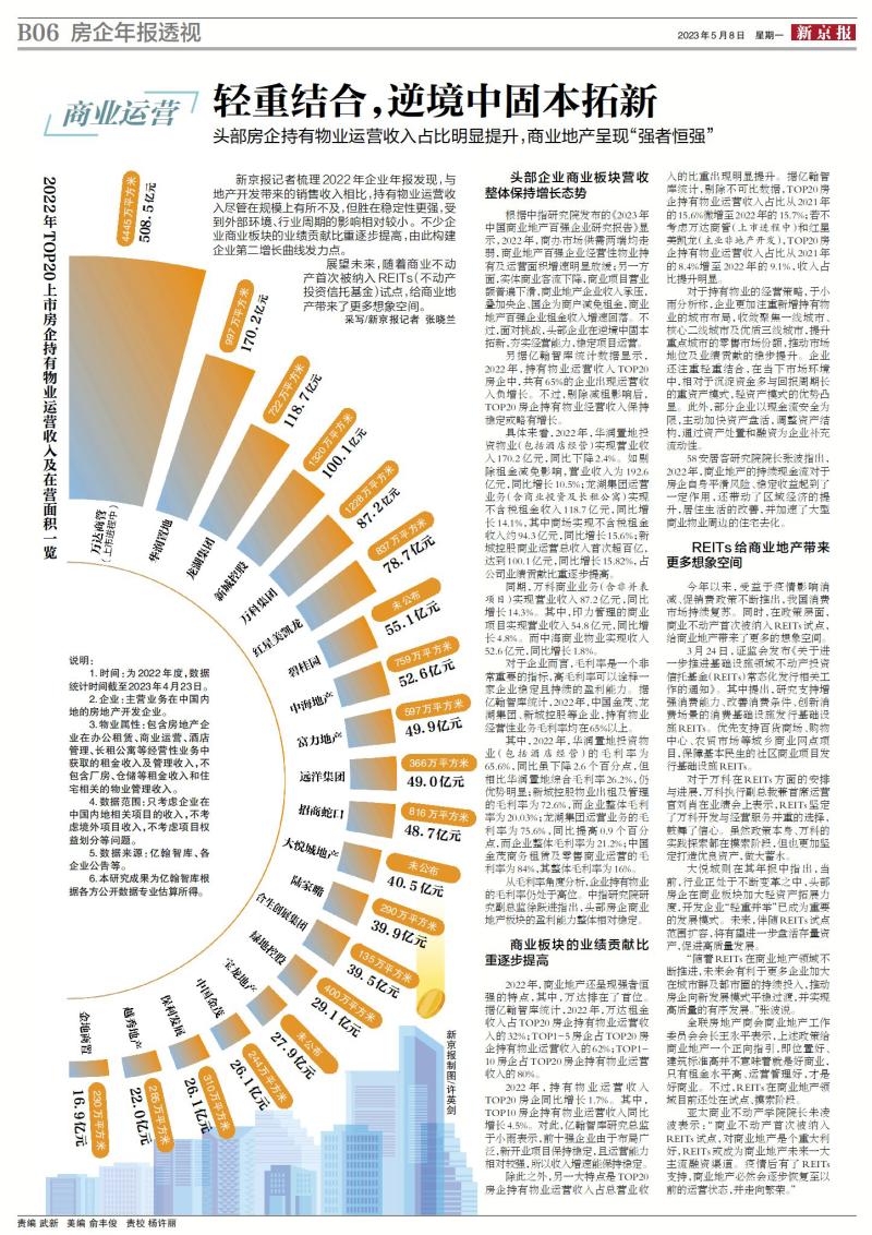 新京報2023年5月8日產經週刊《年報裏的房企 透視未來》。