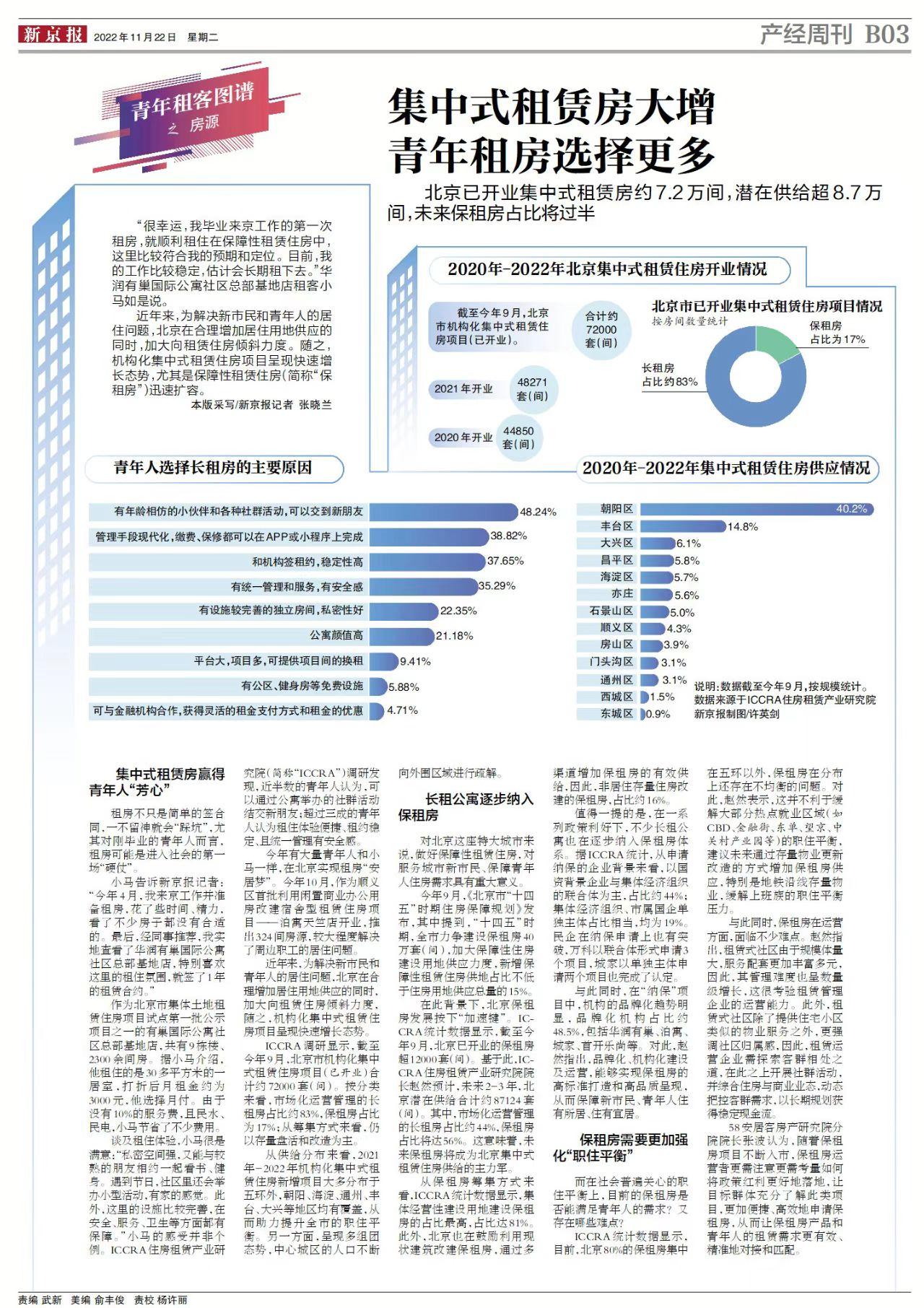 近年來,爲解決新市民和青年人的居住問題,北京在合理增加居住用地供應的同時,加大向租賃住房傾斜力度,隨之,機構化集中式租賃住房項目呈現快速增長態勢。