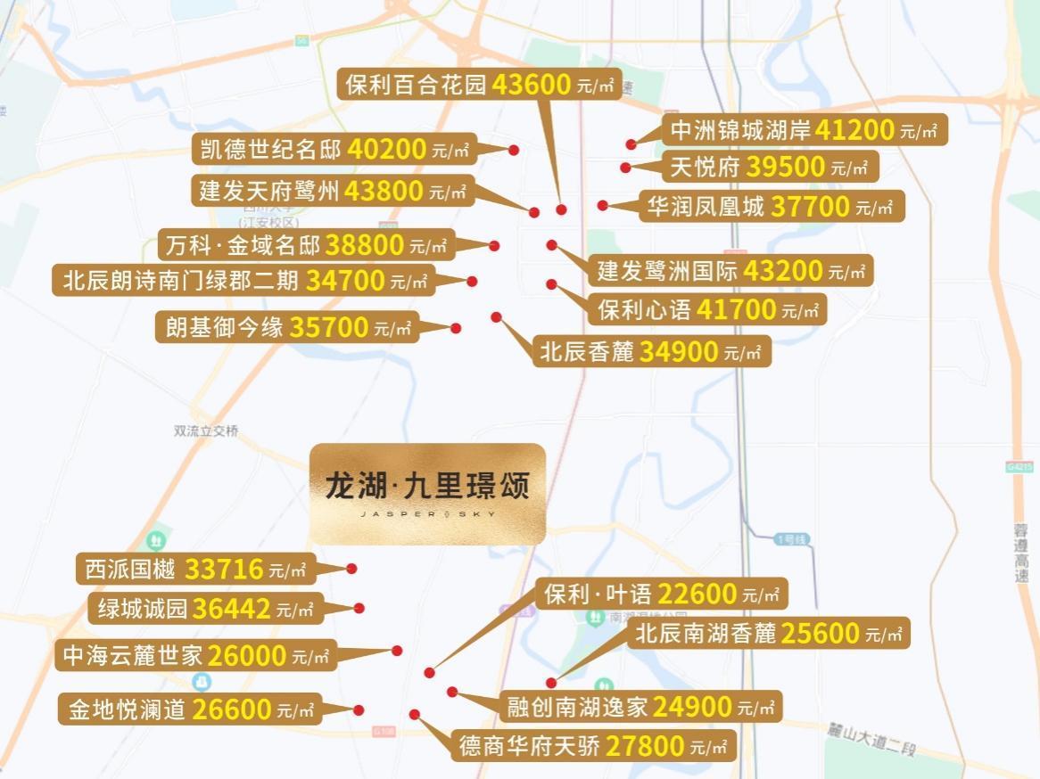 更重要的是,對比大源南上下游板塊的房價,會發現它是城南最爲明顯的價值窪地之一。板塊北面的大源,二手房價3萬起步,板塊南面的怡心湖,二手房價也站上了3萬元/㎡。在市場的召喚聲中,大源南等來了龍湖·九里璟頌。