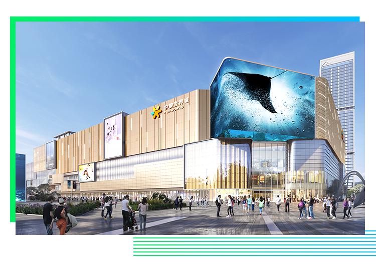 花橋中駿世界城主入口上方打造的超大顯示屏,是全國首個超1000㎡的真裸眼3D顯示屏。不僅爲城市街角、廣場、輕軌S11號線提供沉浸式視覺體驗,給消費者帶來極震撼的視覺效果,更是項目的重要記憶點和話題點,爲購物中心吸引了大量客流,也將會爲品牌提供新的展示平臺。