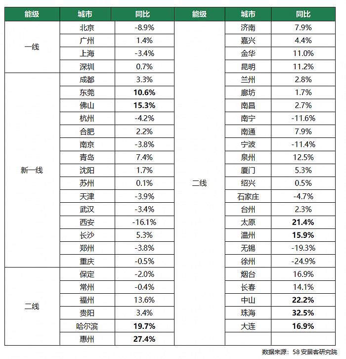 從成交端來看,三四線城市的返鄉置業有一定回升,28個三四線城市環比下降61%,但同比上漲13%,東南沿海城市如溫州、東莞、中山、珠海等漲幅均超50%。