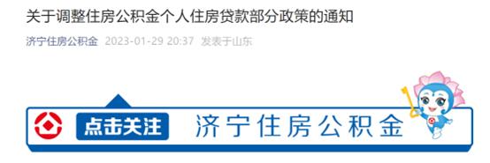 1月29日,“濟寧住房公積金”微信公衆號發佈《關於調整住房公積金個人住房貸款部分政策的通知》。