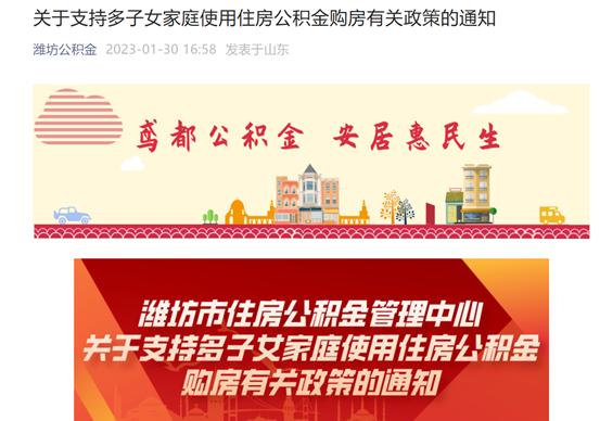 1月30日,“濰坊公積金”微信公衆號發佈了《關於支持多子女家庭使用住房公積金購房有關政策的通知》。