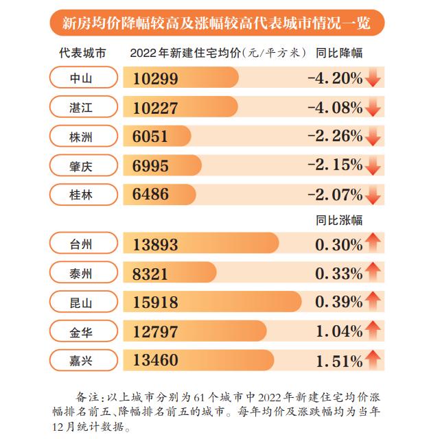 而根據中指研究院的數據,從全國61個三四線城市來看,中山、湛江、株洲、肇慶、桂林5個城市的房價在2022年有較爲明顯的降幅,其2022年新房房價均價同比增幅分別爲-4.20%、-4.08%、-2.26%、-2.15%和-2.07%。國家統計局數據也顯示,2022年12月,湛江、岳陽的新房房價指數同比降幅爲9.3%和9.2%,其中,湛江也成爲全國70個城市中房價指數同比下降最多的城市之一。