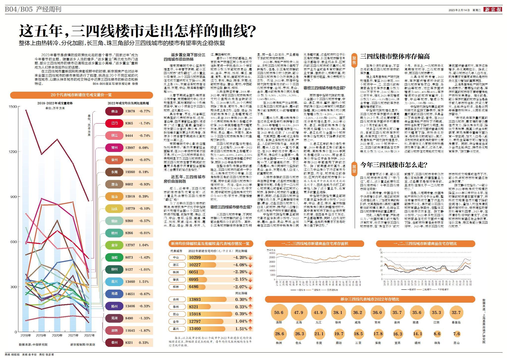 新京報2023年2月14日產經週刊《三四線樓市危與機》。