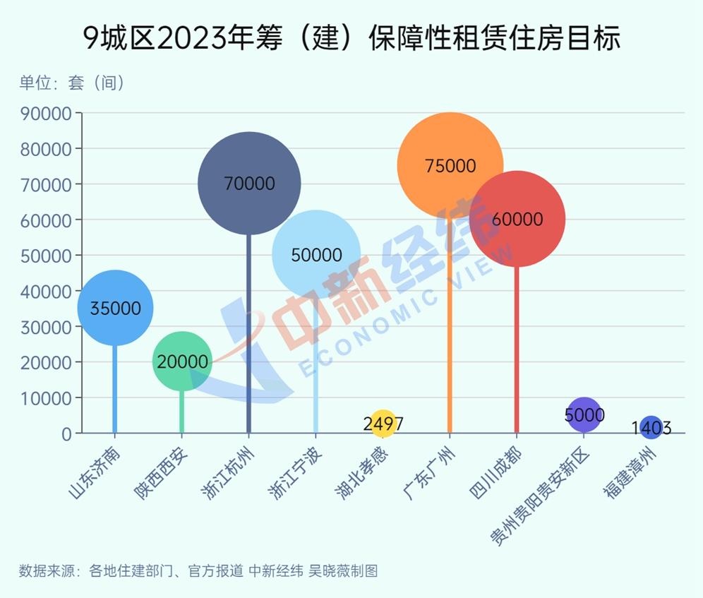 而從城區來看,山東濟南、浙江杭州等9地披露了目標。其中,預計籌集過萬套的共6地,分別爲廣東廣州、浙江杭州 、四川成都、浙江寧波、山東濟南和陝西西安,廣州以7.5萬套領跑。