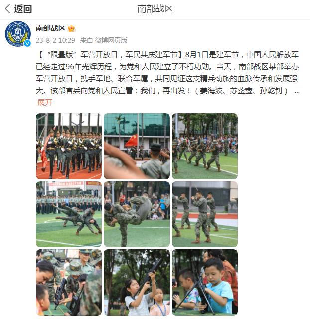 8月1日是建軍節,中國人民解放軍已經走過96年光輝歷程,爲黨和人民建立了不朽功勳。當天,南部戰區某部舉辦軍營開放日,攜手軍地、聯合軍屬,共同見證這支精兵勁旅的血脈傳承和發展強大。該部官兵向黨和人民宣誓:我們,再出發!(姜海波、蘇鎣鑫、孫乾釗)