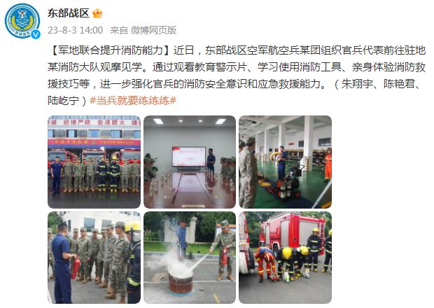 近日,東部戰區空軍航空兵某團組織官兵代表前往駐地某消防大隊觀摩見學。通過觀看教育警示片、學習使用消防工具、親身體驗消防救援技巧等,進一步強化官兵的消防安全意識和應急救援能力。(朱翔宇、陳豔君、陸屹寧)