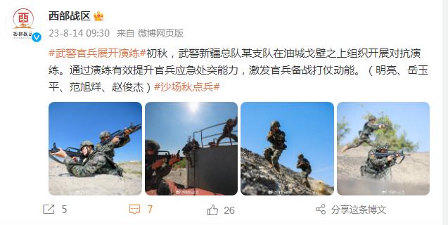 初秋,武警新疆總隊某支隊在油城戈壁之上組織開展對抗演練。通過演練有效提升官兵應急處突能力,激發官兵備戰打仗動能。(明亮、嶽玉平、範旭烊、趙俊傑)