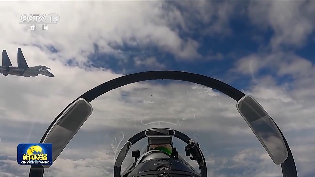 在聯合奪取海空制權演練中,由戰區空軍殲擊機、轟炸機組成的多機編組掛載實彈,多方向飛赴預定空域建立打擊陣位,協同驅護艦、導彈快艇襲打“敵”偵巡艦機。空中兵力完成戰術編組後,依託岸海空聯合情報體系,構建協同一體的制空、制海信火鏈路,展開聯合偵察,進行目標分配,實施精確打擊,實際檢驗多域感知、協同配合、聯合封打能力。