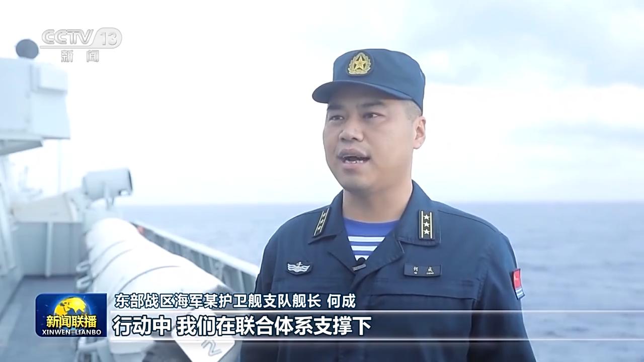 東部戰區海軍某護衛艦支隊艦長 何成:行動中,我們在聯合體系支撐下,立足實景、實案、實戰,連續開展聯合搜反潛、聯合封鎖、近距反擊等課目演練。