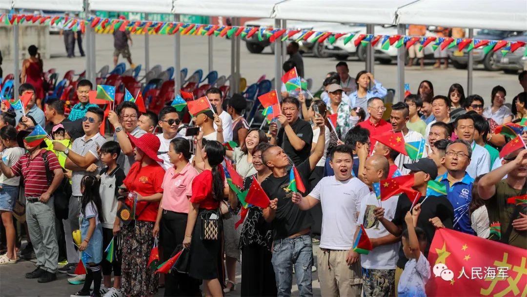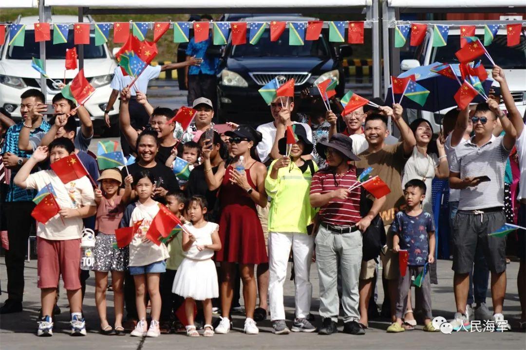 ▲圖爲當地民衆及華人華僑代表到碼頭迎接。黎宇 攝