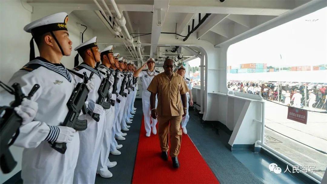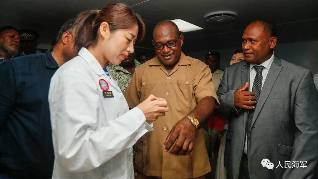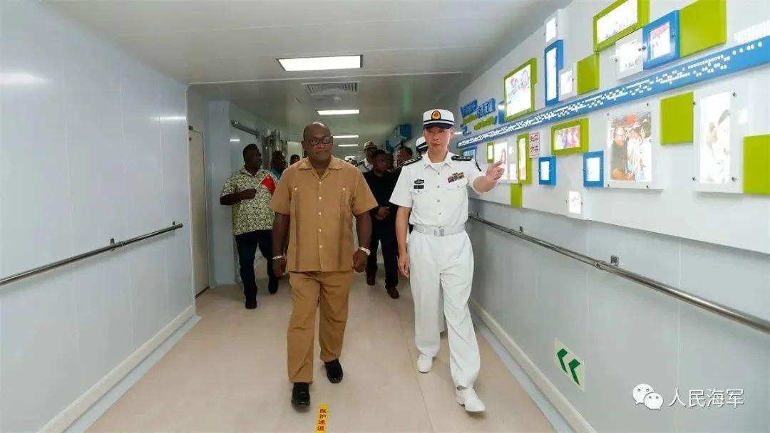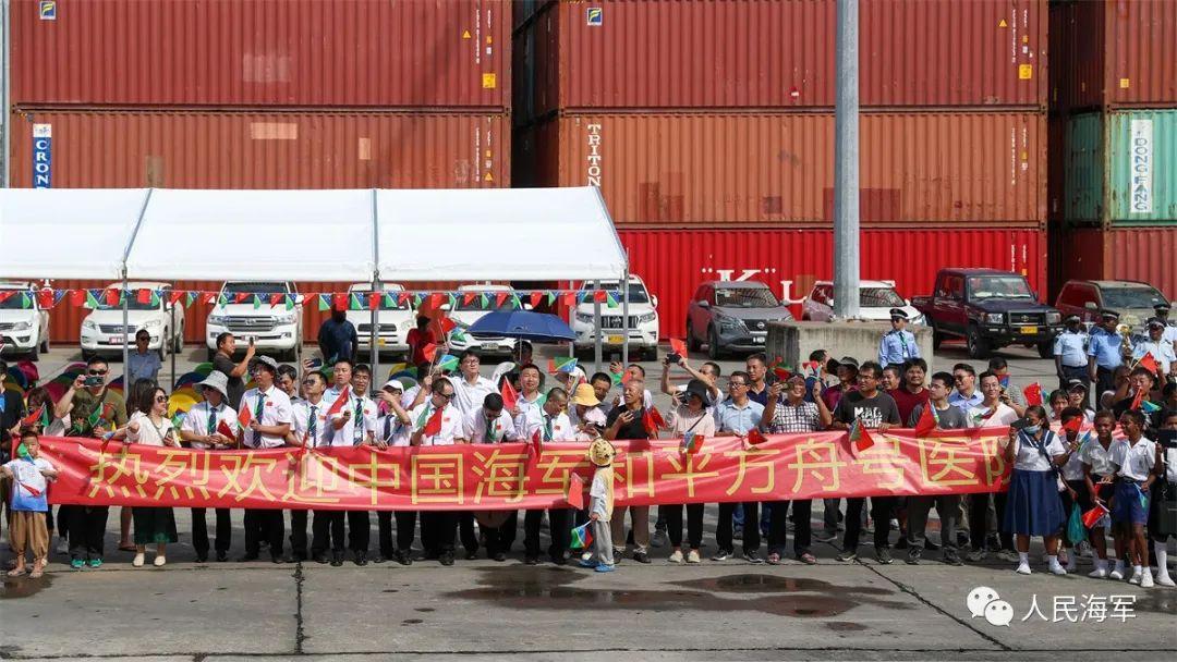 上午10時,和平方舟號醫院船靠泊霍尼亞拉港,所方在碼頭舉行了隆重的歡迎儀式。所警察樂隊奏響中所兩國國歌,穿着特色民族服飾的民衆跳起歡快奔放的舞蹈,華人華僑進行了中國特色的舞獅表演。所副總理梅蘭加、衛生部長託加瑪納等政要,我駐所大使李明及使館工作人員,以及華人華僑、中資機構代表等在碼頭迎接。