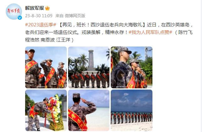近日,在西沙英雄島,老兵們迎來一場退伍儀式。戎裝雖解,精神永存!(陳竹飛 程浩然 南恩波 江王洋)