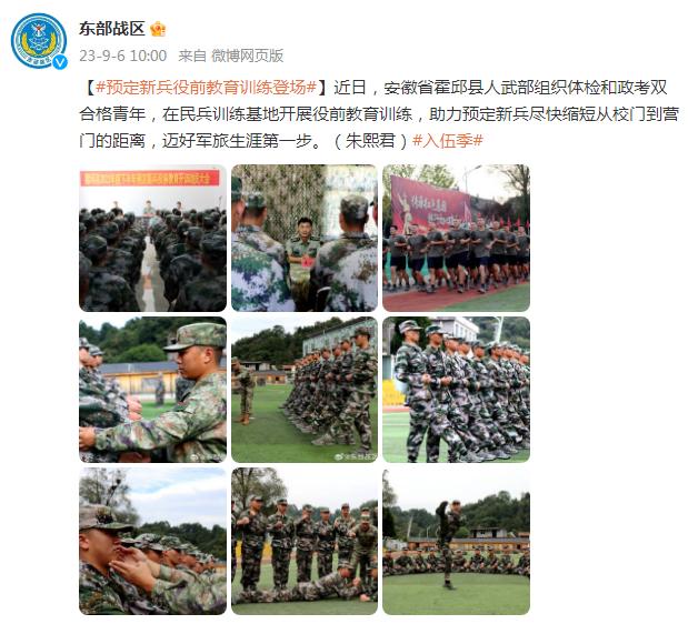 近日,安徽省霍邱縣人武部組織體檢和政考雙合格青年,在民兵訓練基地開展役前教育訓練,助力預定新兵儘快縮短從校門到營門的距離,邁好軍旅生涯第一步。(朱熙君)