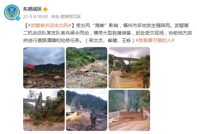 受颱風“海葵”影響,福州市多地發生強降雨。武警第二機動總隊某支隊官兵聞令而動,攜帶大型救援裝備,趕赴受災現場,協助地方政府進行道路清障和搶修任務。(吳文傑、崔健、王爍)