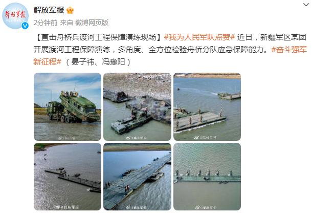 近日,新疆軍區某團開展渡河工程保障演練,多角度、全方位檢驗舟橋分隊應急保障能力。 (晏子禕、馮豫陽)