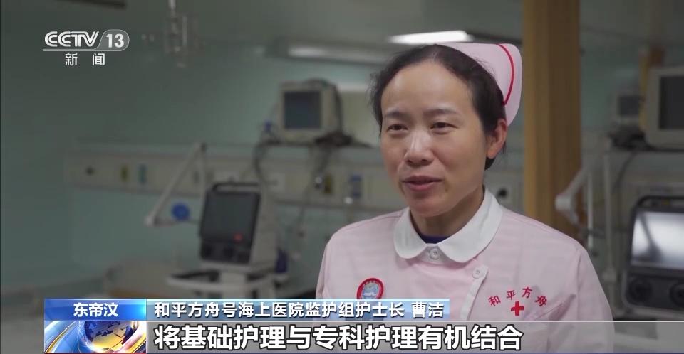 和平方舟號海上醫院監護組護士長 曹潔:我們堅持“以患者爲中心”,將基礎護理與專科護理有機結合,聚焦患者診療體驗感和滿意度,提升護理服務內涵,使患者得到連續、全程、人性化的優質護理服務。