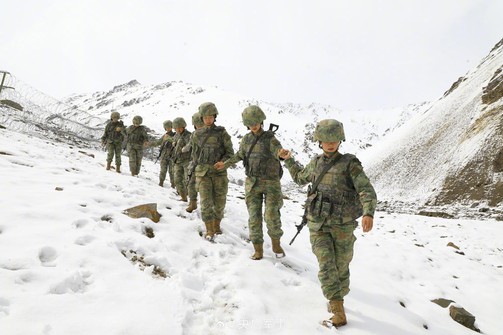 近日,海拔4000多米的雪域高原,新疆阿克蘇軍分區別迭裏邊防連8名通信女兵首次踏上巡邏路。巾幗不讓鬚眉,致敬邊防軍人!(王軍強 鄔建鋒 李祥 張建揚 任景飛 董欣宇 範高臣)