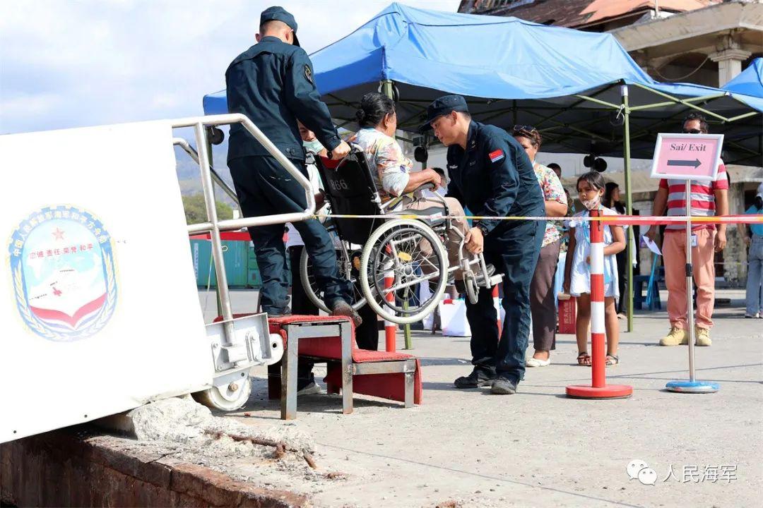 和平方舟時隔6年的再次到訪,受到了當地民衆、華人華僑的熱烈歡迎,前來就診的人絡繹不絕。在充分發揮主平臺優勢開展集中診療的同時,醫院船先後派出5支專家醫療分隊赴東國防部、國民警察總部、海軍司令部、利奎薩市、阿陶羅島開展醫療巡診,1支專家醫療分隊赴東國立醫院開展聯合診療和ACLS培訓。