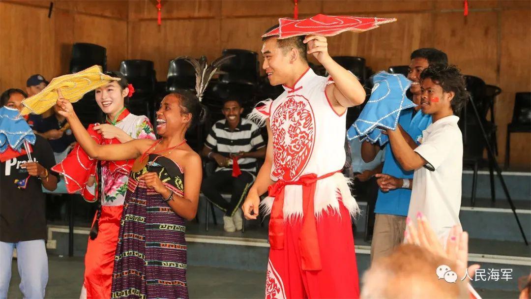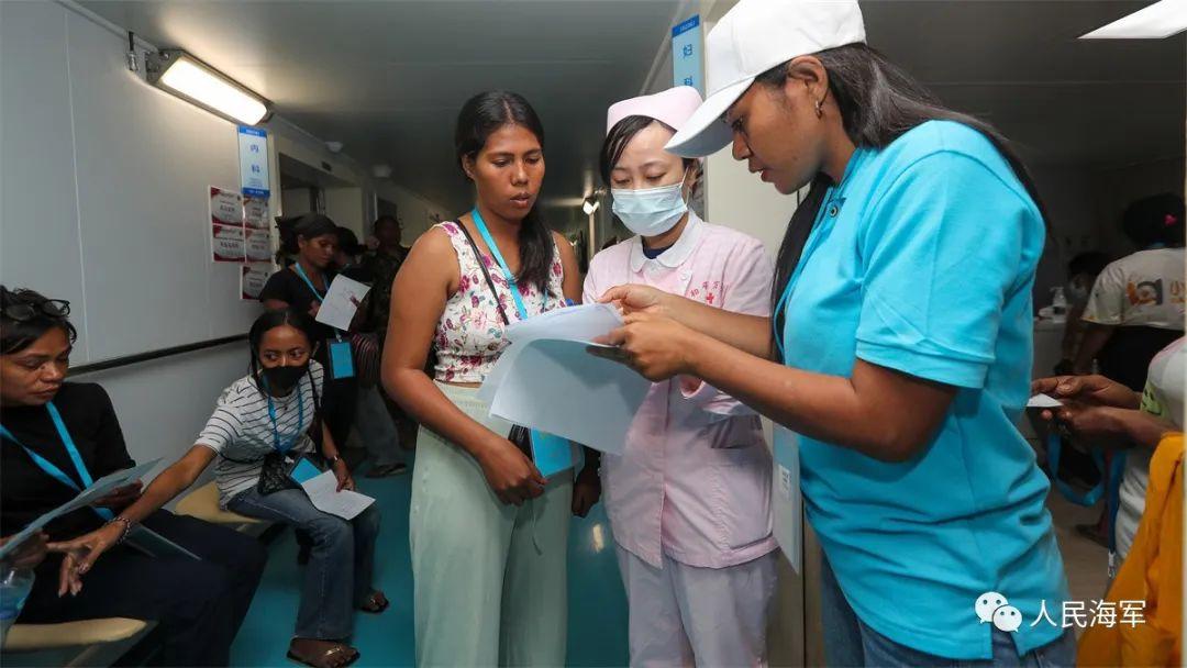 東衛生部長阿瑪拉爾女士多次登船擔任志願者,與中方醫護人員一起爲就診民衆服務。此外,健康宣教和文化聯誼分隊還先後赴東帝汶商學院、帝力大學開展文化聯誼活動,任務官兵參觀了東海軍海拉基地並與東國防軍官兵進行了足球友誼賽。