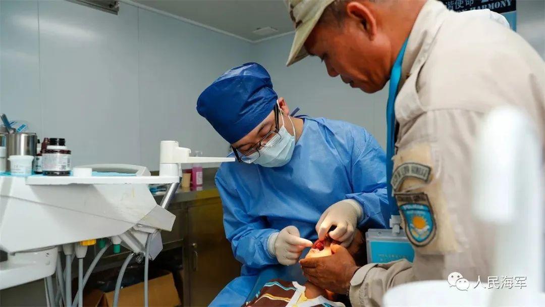 ▲9月7日,和平方舟口腔科陳辰醫生爲當地患者實施手術。黎宇 攝
