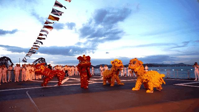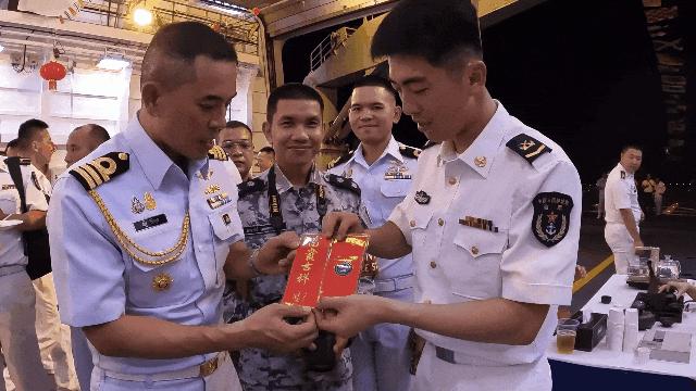 ▽中方官兵代表與泰方嘉賓共同慶祝