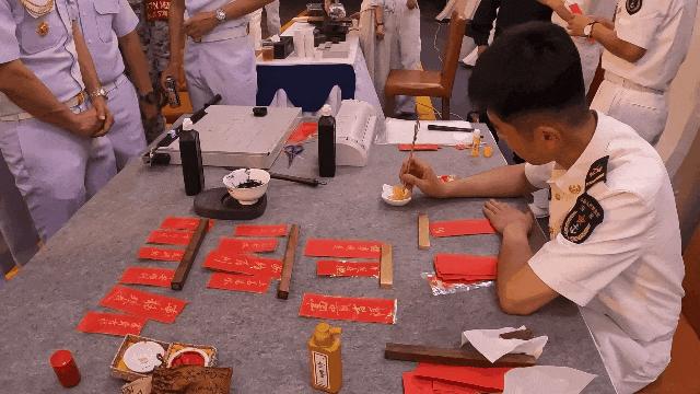 ▽宋振濤現場書寫書籤並贈送給泰國官兵