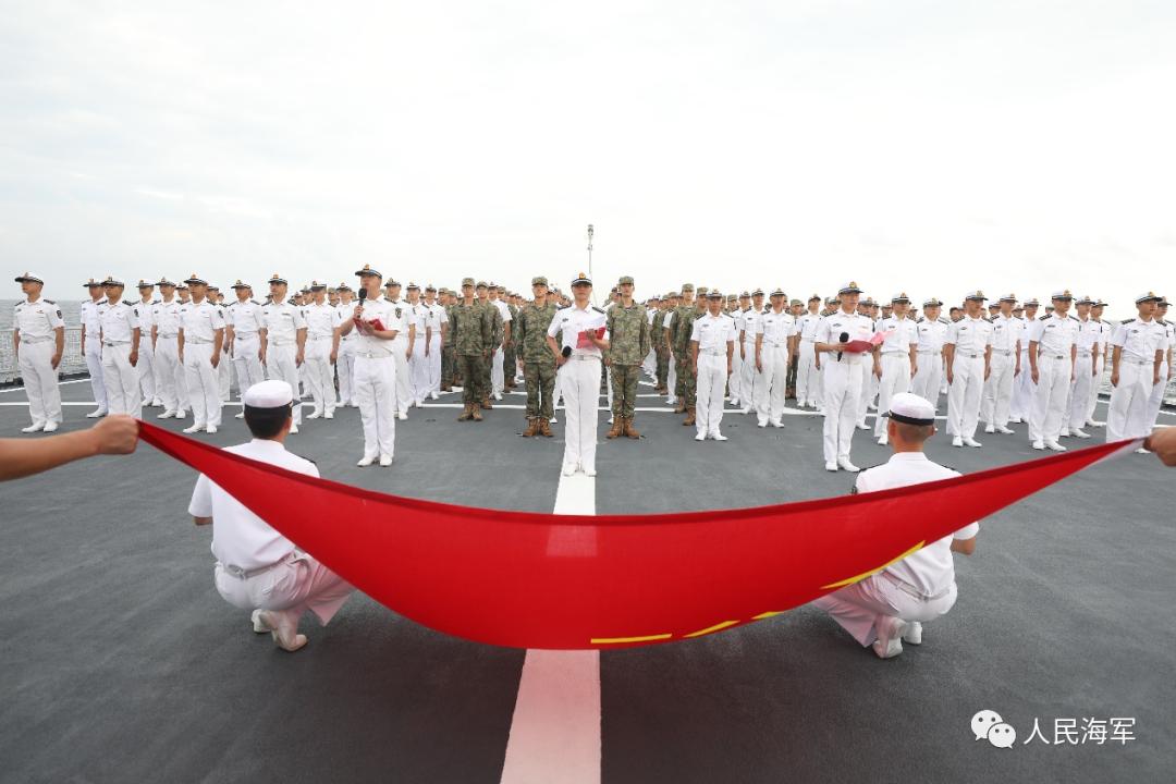 9月12日,太平洋海面波光粼粼,空中萬里無雲,海軍戚繼光艦正劈波斬浪,官兵們身着潔白的軍裝在飛行甲板上整齊列隊,呈現出“海軍錨”造型,共同見證艦艇,從北半球跨越赤道通往南半球,這一激動人心的時刻。