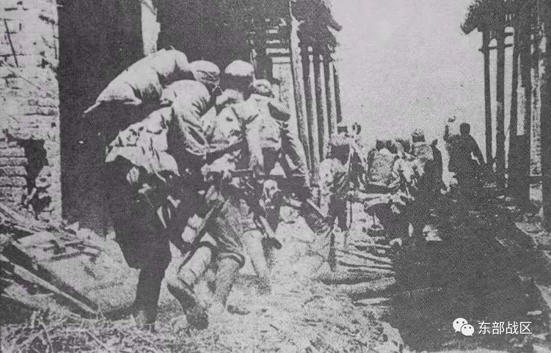 冒着敵人的炮火,前進!”