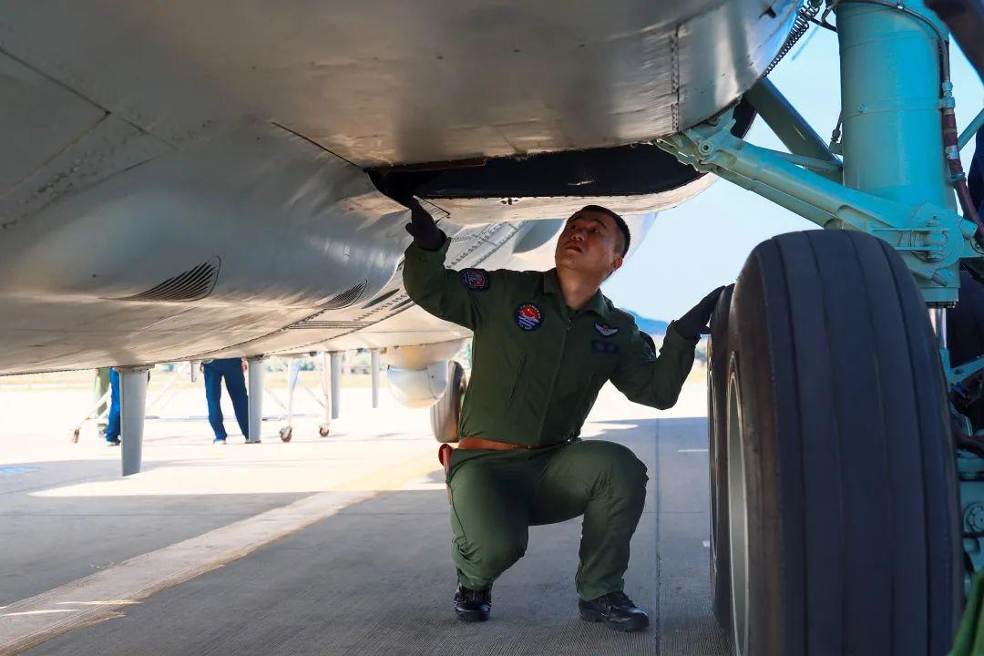 地勤官兵對戰機認真檢查