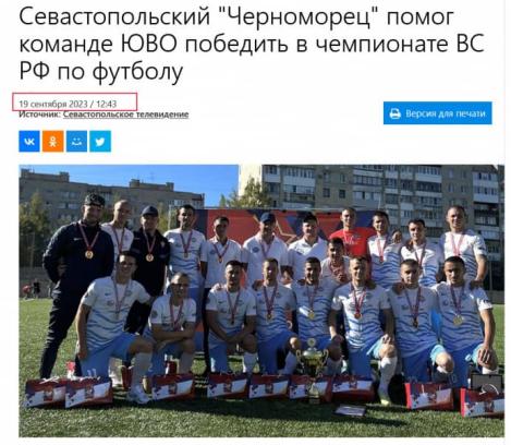 報道提到,俄黑海艦隊足球隊贏得冠軍的時間是在9月18日,也就是烏克蘭特種部隊22日襲擊俄羅斯黑海艦隊總部的前幾天。