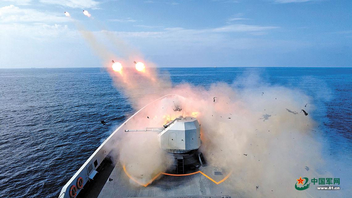 “立即擊沉‘敵艦’!”航行途中,戰鬥指令傳來,各艦迅速調整航向進行戰術機動,佔領攻擊陣位。麗水艦率先做好射擊準備,牢牢鎖定目標。“預備——放!”指揮員果斷下達攻擊指令。伴着隆隆炮聲,一枚枚炮彈脫膛而出,對“敵”目標發起攻擊。
