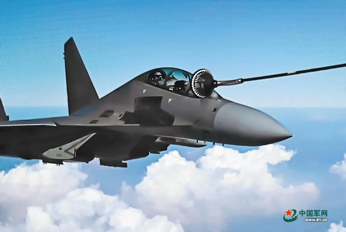 戰機起飛後立即組成戰術編隊,飛赴某空域開展空中巡邏。在完成數輪高強度空中巡邏後,戰機油量相繼告急。此時,一架加油機已在預定空域待命。
