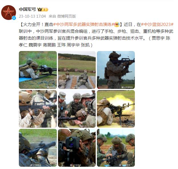 近日,在“中沙藍劍2023”聯訓中,中沙兩軍參訓官兵混合編組,進行了手槍、步槍、狙擊、重機槍等多種武器射擊的課目訓練,旨在提升參訓官兵多種武器實彈射擊技術水平。(賈思宇 陳孝仁 魏震宇 蔣展鵬 王瑋 周宇華 張凱)