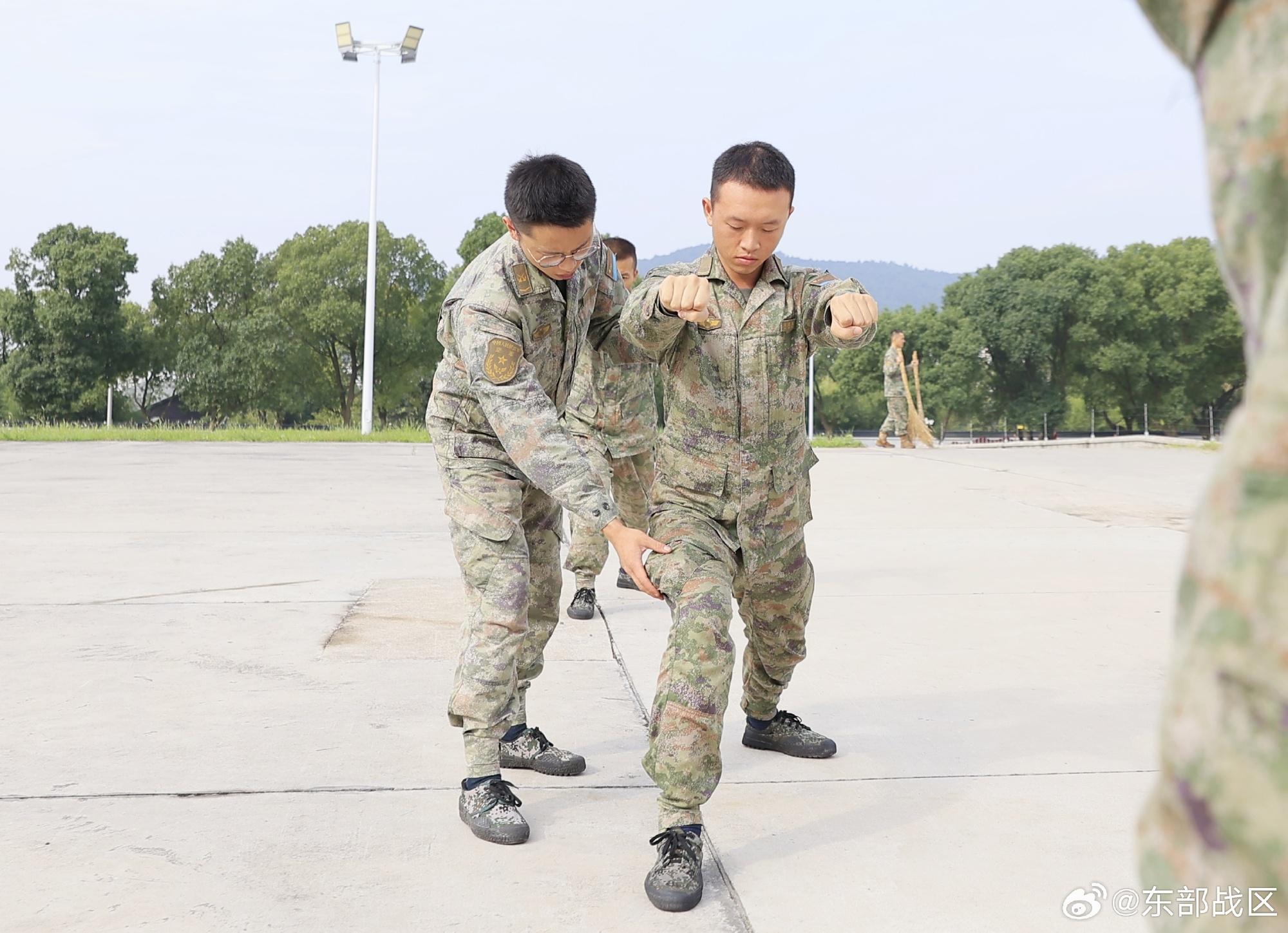 近日,東部戰區空軍某場組織新進學兵訓練擒敵拳。在帶兵骨幹的帶領下,新進學兵們刻苦訓練,練出了膽氣,練硬了作風。(李偉輝、任瑞凱、陳澤瑋)