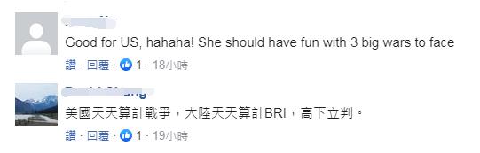 《中國時報》的這篇評論獲得不少島內網民的贊成。有留言寫道:美國天天算計戰爭,大陸天天算計BRI(一帶一路倡議),高下立判。