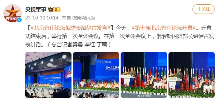 今天,第十屆北京香山論壇開幕。開幕式結束後,舉行第一次全體會議。在第一次全體會議上,俄羅斯國防部長紹伊古發表講話。(總檯記者梁晨 李紅 丁萌)