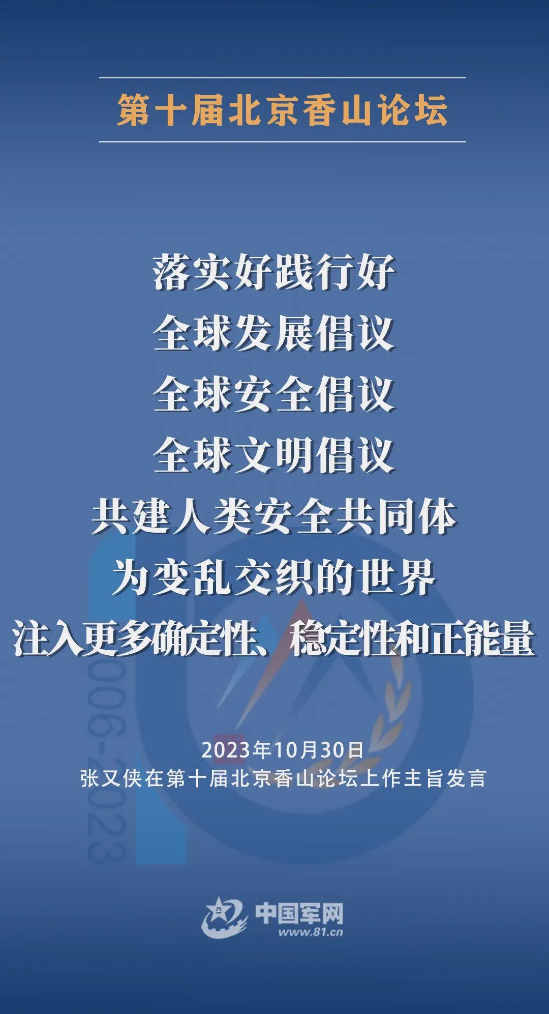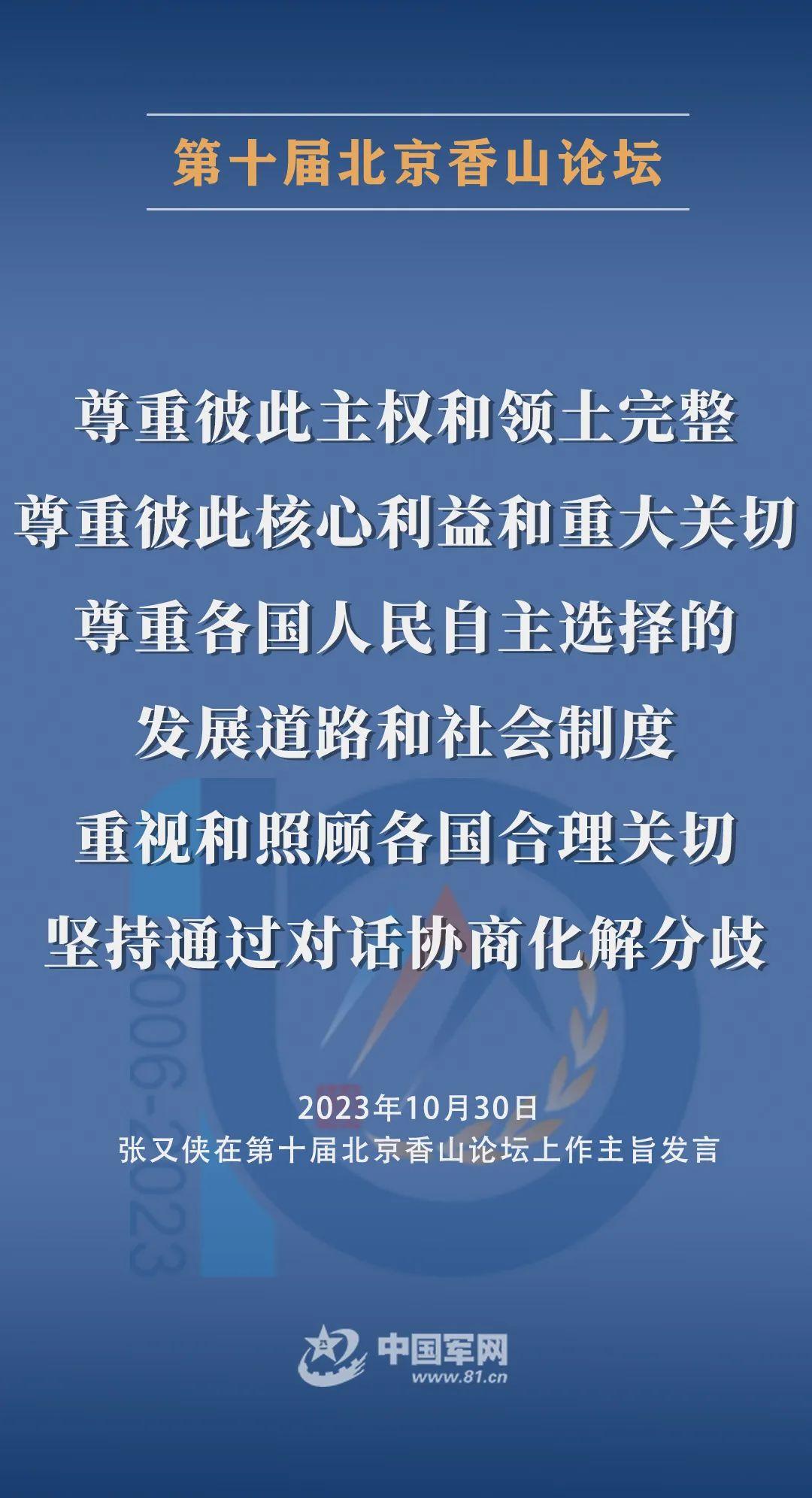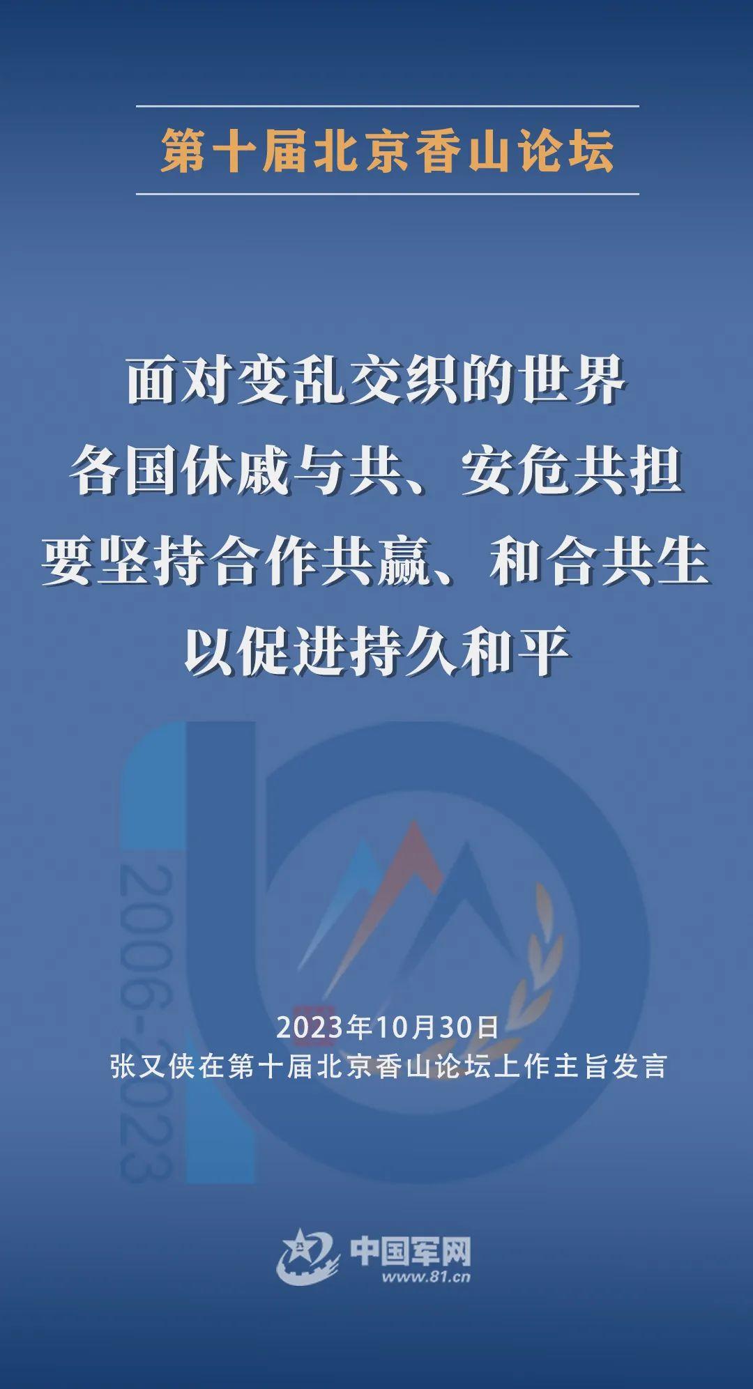 10月30日上午,第十屆北京香山論壇在北京國際會議中心開幕。中央軍委副主席張又俠出席開幕式並作主旨發言。
