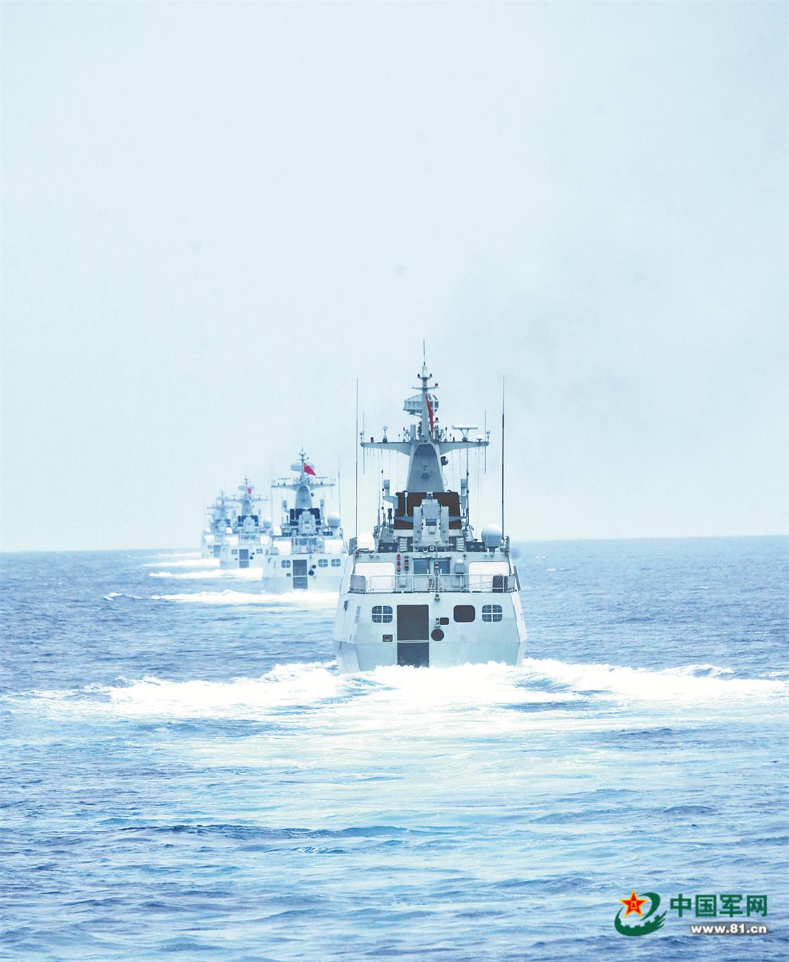 近日,海軍某護衛艦支隊數艘艦艇組成編隊,赴某海域開展實彈射擊演練。