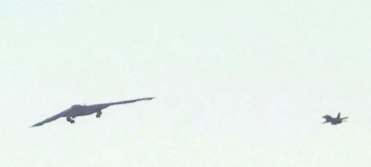 社交媒體傳出的視頻顯示,B-21試飛由一架F-16戰鬥機伴飛,飛行全程未收起落架。F-16戰鬥機飛行員可對B-21進行近距離目測觀察。